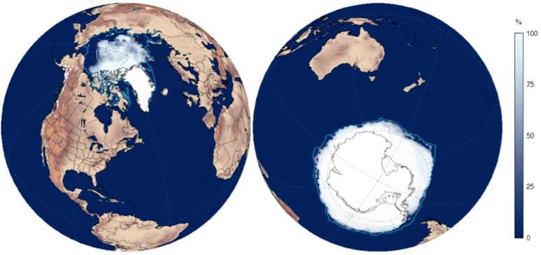 Among the consequences of climate change, the sea-ice coverage is changing fast. But is it increasing or decreasing ? Is the trend established on the long term, or are its dynamics more complex ? Is it changing at the same pace and in the same direction at both poles ?